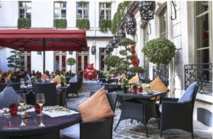 La cour pavée du Buddha Bar Hôtel Paris, calme et volupté au coeur de la capitale: